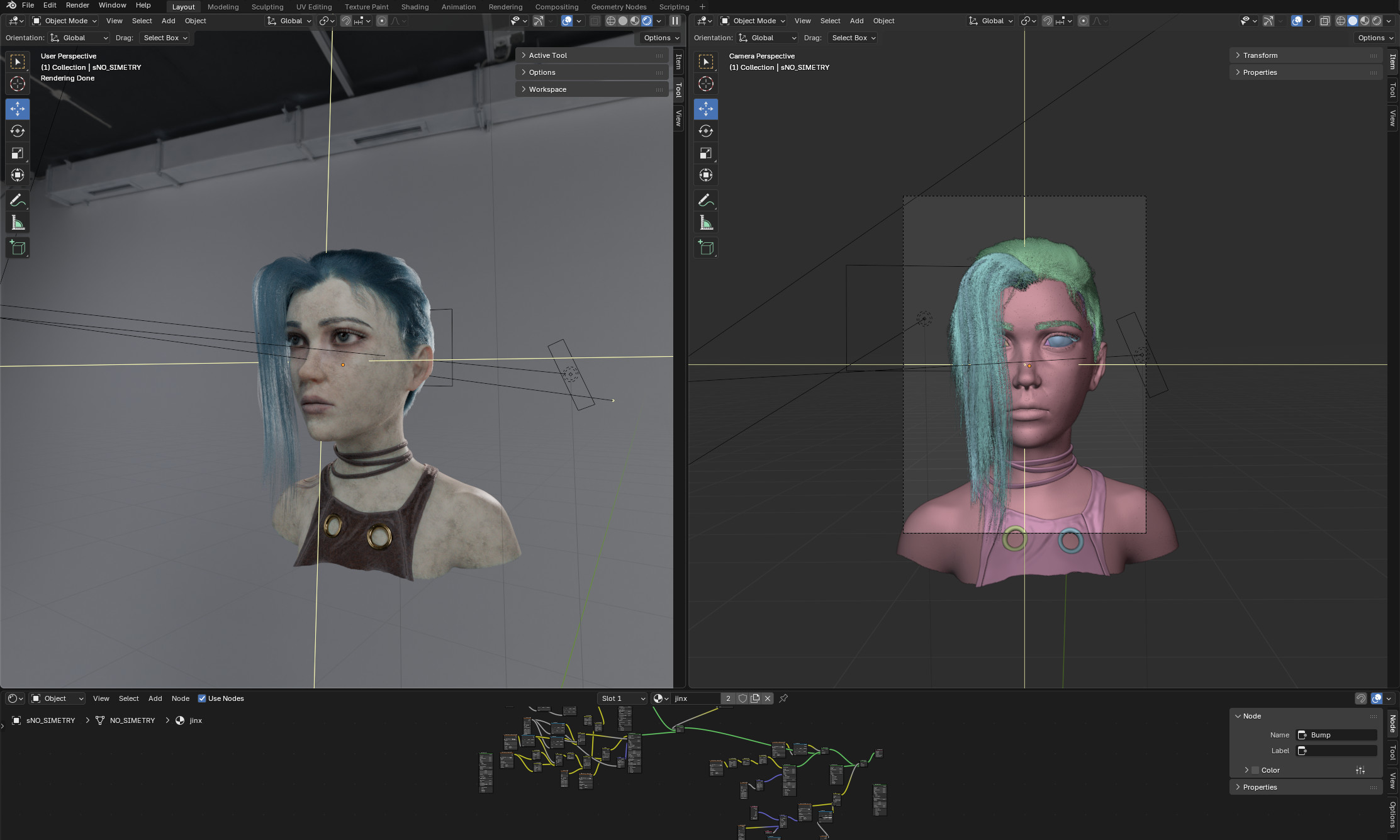 I don’t usually make characters, but I wanted to do a personal project and step out of my comfort zone. Made entirely in ZBrush and Blender. Composited in After Effects. The idea is to create a full-body shot, though I’ll need some time to finish it.